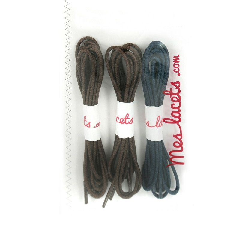 Pack of 3 dress shoelaces : - two pairs of brown mahogany shoelaces; - one pair of cranberry blue shoelaces.